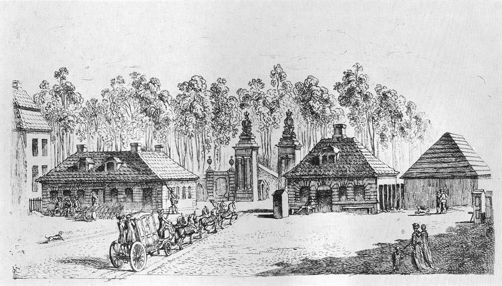 Mit der Zeit wuchs Berlin zur preußischen Hauptstadt heran. 1734 wurde eine Zollmauer mit mehreren Toren errichtet, darunter das Vorgängertor des Brandenburger Tors. Die alte Anlage verfügte über schlichte Fußgängerpassagen sowie Wach- und Zollgebäude. Im Sommer 1788 begann der Abriss der alten Tore, um Platz für einen Neubau zu schaffen.