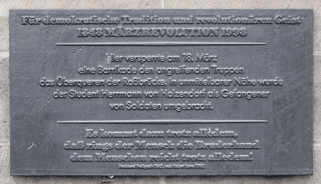 Im 19. Jahrhundert erhielt die Brücke neues Leben. Im Jahr 1835 wurde ihr Name durch königlichen Erlass bestätigt – Roßstraßenbrücke. Dies war wichtig, um die Stadtnamen zu präzisieren und auf Karten zu verzeichnen. Die Brücke wurde häufig repariert, was ihre Nutzung durch die Berliner Bevölkerung einschränkte. Im Jahr 1848 wurde das Gebiet rund um die Brücke während der Revolution von 1848–1849 zu einem Ort der Auseinandersetzungen zwischen der rebellierenden Bevölkerung und den Regierungstruppen. Am 18. März 1848 wurde hier der junge Bürger Hermann von Holtzendorff (1825–1848) getötet. Eine Gedenktafel, die am 14. März 1998 angebracht wurde, erinnert heute daran.
