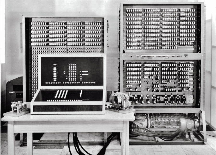 1938 stellte Zuse die Z1 fertig. Die vollmechanische Maschine hatte einen eingebauten Rechenmechanismus und einen Speicher aus Metallschichten zwischen Glasscheiben. Neuartig war die Möglichkeit, Programme über Lochstreifen einzugeben. Z1 war eine binäre Maschine mit zwei Positionsschaltern, was über die Ansätze von Babbage hinausging. Dennoch arbeitete die Z1 nicht zuverlässig, da ihre Mechanik zu ungenau war.