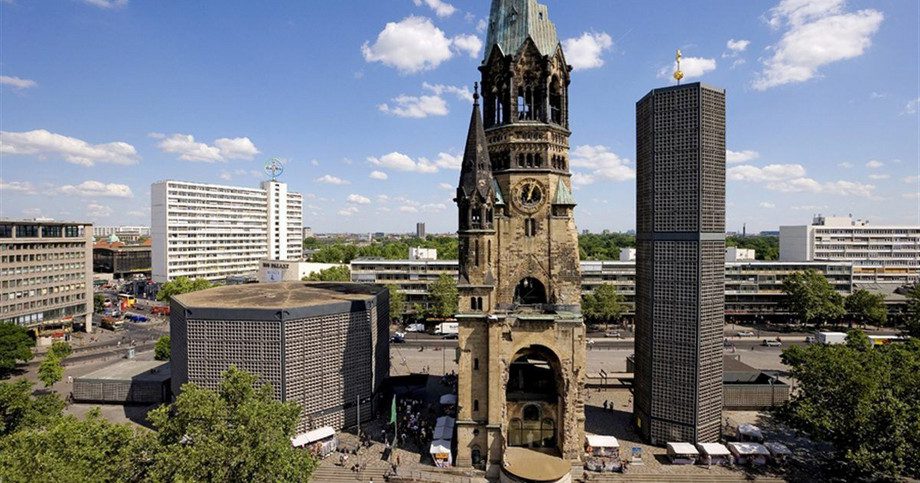 Святыня в стиле романского Возрождения – Мемориальная церковь Кайзера Вильгельма – реконструкция протестантской церкви XIX века, уничтоженной во время Второй мировой войны. Современное здание было построено в 1959–1963 годах, прямо возле поврежденного шпиля старой церкви. На месте развалин бывшей святыни теперь военный мемориал. А вот шпиль умышленно не был полностью отреставрирован и служит напоминанием о вреде от войны.