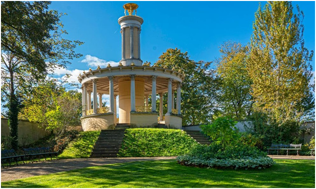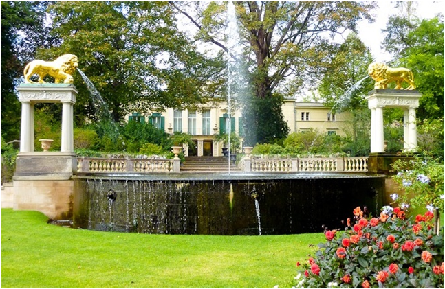 А мечта Карла Прусского о маленькой Италии в Германии сконцентрировалась в Итальянском саду (Italienischer Garten). Там преобладали строгие линии террас, статуи, декоративные вазы и утонченные зеленые композиции. Третьей зоной стал Сад развлечений (Vergnügungsgarten), предназначенный для прогулок, камерных встреч и бесед. Именно там разместили ротонду с колоннами и чайный домик.