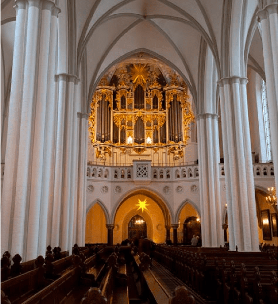 Орган храма был создан в период 1720-1722 гг. Автором был Йоахим Вагнер (это не тот Вагнер, который написал «Полет валькирий» и другие музыкальные произведения в XIX в.). Открытие состоялось в 1723 г. Позднее инструмент усовершенствовали. В частности, в 1800 г. было заменено 1400 из 2556 органных трубок. В последующие годы продолжались изменения, способствовавшие восстановлению диапазона звука, было увеличено количество голосов до 57 и установлены конусные затворы с трубчатой пневматикой. Данный орган считается самым красивым в Берлине. Вторая мировая война не повредила его, а по ее завершении мастера заменили некоторые детали органа, что способствовало приближению его звучания к барочному. В 1957, 1970 и 1985 годах продолжались изменения, приблизившие орган к оригинальному звучанию.