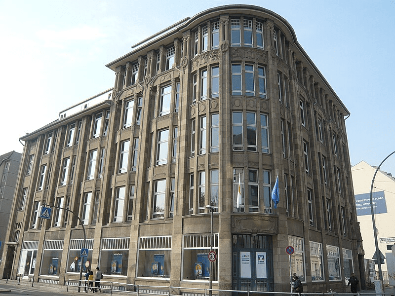 На перекрестке в нескольких домах – Вальштрассе находятся здания № 76-79 в стиле модерн. Они построены в канун Первой мировой войны, и здесь размещалось текстильное предприятие, далее гильдия плотников, штаб руководства KPD в 1946 году и далее даже Dietz-Verlag. Сегодня здесь комфортно разместилось посольство Австралии в Берлине.