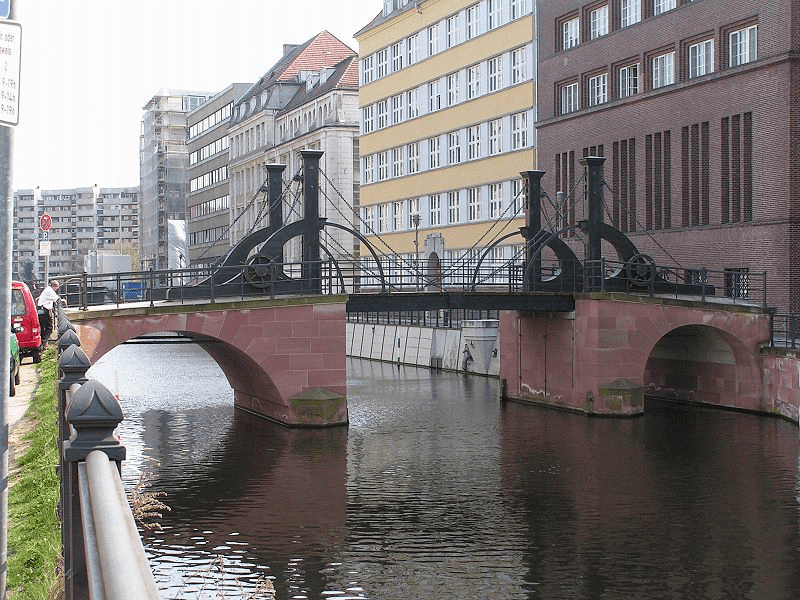 Самым старым мостом немецкой столицы Юнгфернбрюкке. Он размещен в районе Митте. Это один из 9 подъемных мостов на реке Шпрее и шлюзовом канале или, Шлойзенграбен. Что такое шлюзовый канал? Это часть участка реки, которая обходит дамбу. Таким каналом может быть и участок реки у электростанции. В частности, такие каналы строили в период XVI-XIX вв. в существующих старых или боковых рукавах русла реки, если в основном находились плавающие водяные мельницы или Мюлендаммены (гидротехнические сооружения, связанные с мельницами). Данный мост соединяет улицы Фридрихсграхта и Обервассерштрассе. Его размеры незначительны: наибольший пролет – 8,7 м, ширина – 4,5 м, общая длина – 28,0 м. На сегодняшний день – это одно из популярных мест для посещения туристами.