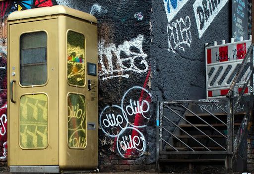 У 1881 році в Берліні, коли запрацювала телефонна мережа, з’явився перший телефонний кіоск. Тоді німецькі телефонні будки були жовто-блакитними, а в 1934 році стали червоними. Після Другої світової війни жовтий колір став обов’язковим як у Західній, так і Східній Німеччині. Біля будок вишиковувалися в чергу всі ті, хто не міг собі дозволити власну телефонну лінію, або ж ті, хто хотів зателефонувати з вулиці додому чи кудись далеко. Користувач повинен був вставляти в слот монету за монетою, щоби запобігти зникненню зв’язку зі своїм родичем чи другом.
