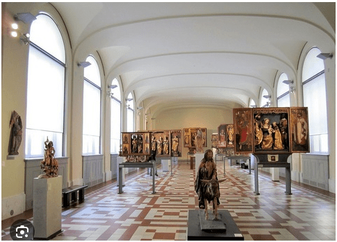 На першому поверсі – 5 внутрішніх двориків і центр із чудовими залами, одразу туристів зустрічає дивовижна кінна статуя Фридриха-Вільгельма фон Бранденбурга. У наступній залі – італійська базиліка Відродження, на почесному місці стоїть флорентійський вівтар воскресіння. А ще – скульптури Венери та Меркурія, які створив для французького короля у 1745 році скульптор Жан-Батіст Пігаль. Але основна експозиція розташована на другому поверсі. Там широкоформатні картини та скульптури таких видатних художників, як Донателло та Тільман Ріменшнайдер. Окремо представлені античні саркофаги, різьблення зі слонової кістки, мозаїчні ікони.