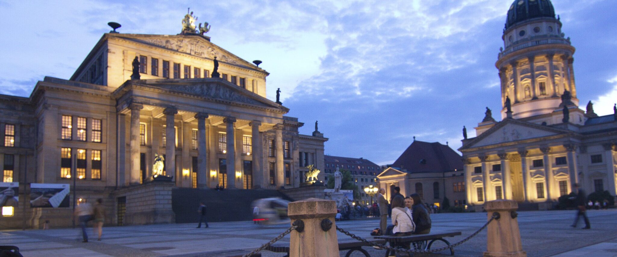 Саме так між двома храмами з’явився перший французький театр комедії у Берліні. У 1802 році його змінили на Національний театр. Він охоплював майже дві тисячі місць. Національний театр проіснував до 1817 року: через пожежу він був повністю зруйнований. Нову будівлю звели через декілька років, у 1821. Це і є сучасна будівля королівського драматичного театру (сьогодні – Концертний зал).